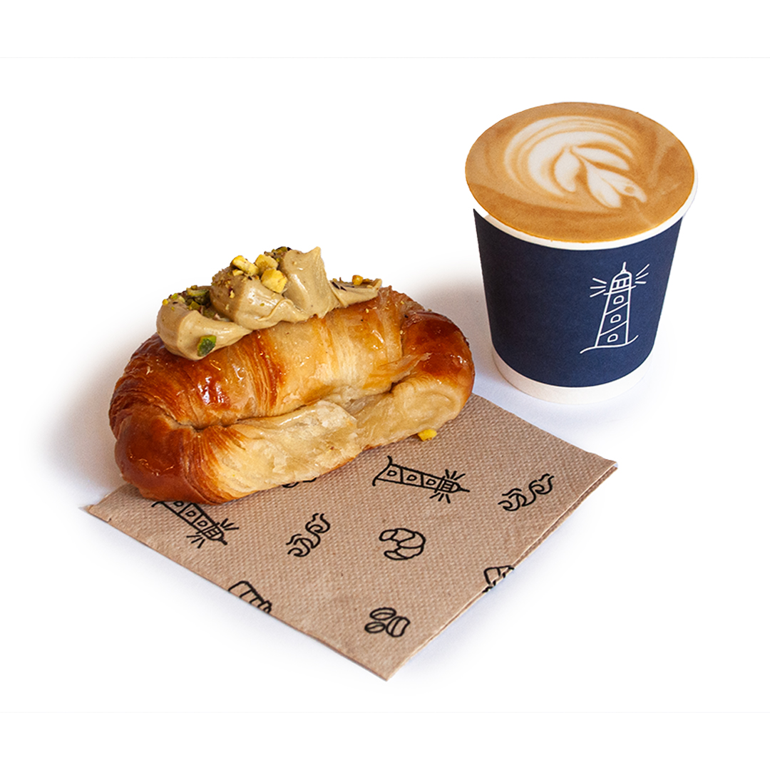 Una "Medialuna" artesanal amb topping (a escollir entre dolç de llet, crema pastissera, xocolata crunchy, xocoberry o festuc).